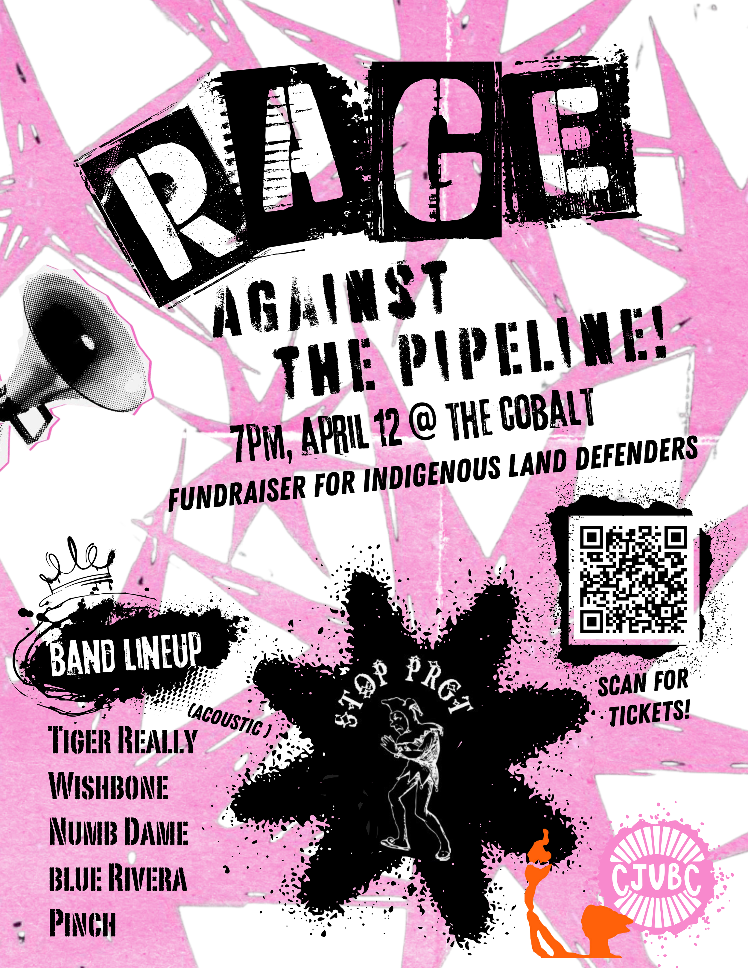 Join us on Sunday, April 12th to at the Cobalt to RAGE AGAINST THE PRGT PIPELINE